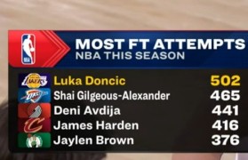 开云体育官网-东契奇本赛季罚球超500个联盟首人 亚历山大465个排第二&哈登第四