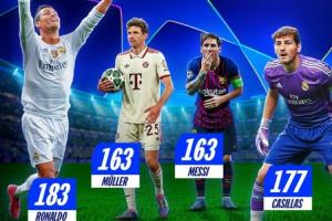 穆勒在欧冠的出场数排名赛事历史并列第三位,仅少于C罗(183)、卡西(177)。在此前162场欧冠比赛中,穆勒打进57球,助攻34次。