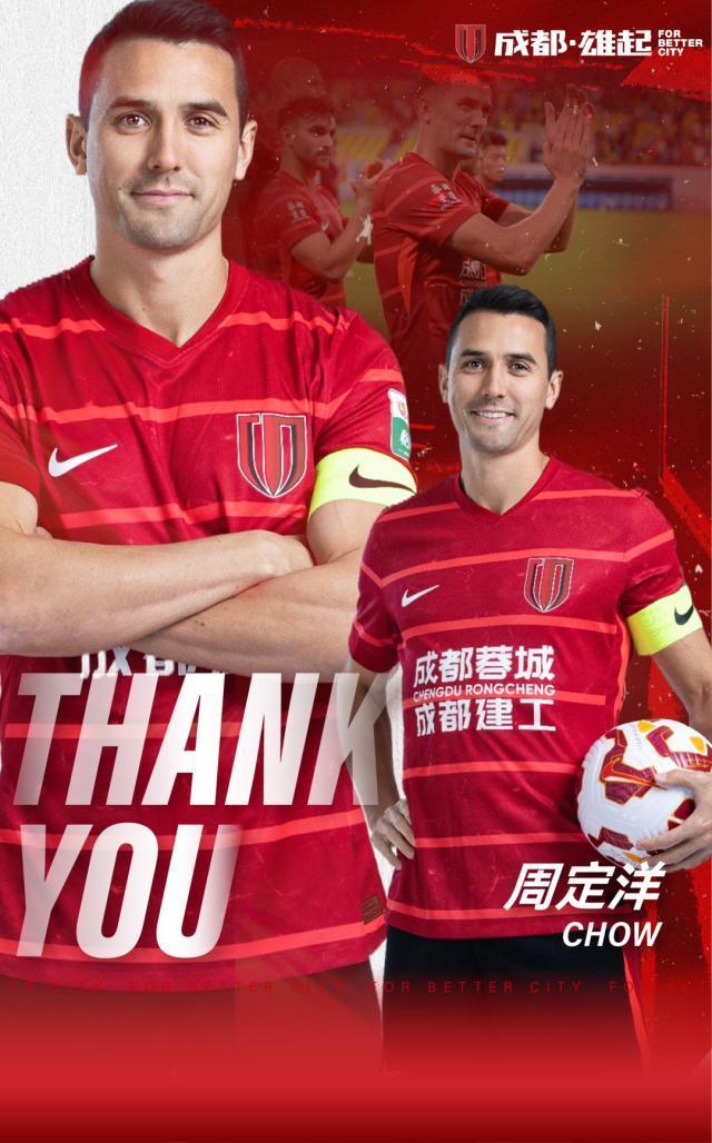 经与球员本人友好协商并达成一致,周定洋与成都蓉城足球俱乐部的合同到期不再续约。