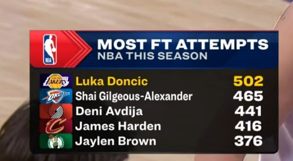 开云体育官网-东契奇本赛季罚球超500个联盟首人 亚历山大465个排第二&哈登第四