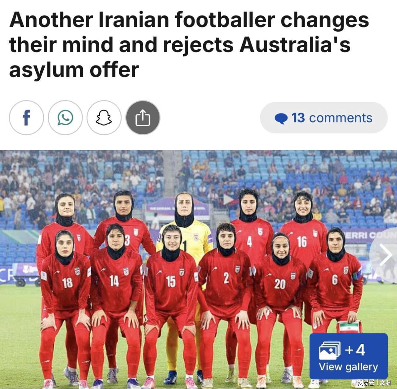 开云Kaiyun官网入口-反悔!曝伊朗女足队长拒绝庇护+启程回国 出走7人只剩2人留在澳洲