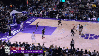 次节比赛,森萨博罚球命中,莫布里扣篮得分,施罗德罚球命中。汤姆林上篮命中,普罗科特上篮并罚球命中,普罗科特三分命中。米切尔上篮得分,姆本三分命中随后命中罚球。莫布里上篮得分,贝利两分命中,普罗科特补篮得分。威廉姆斯两分命中,菲利波夫斯基三分命中然后扣篮得分。米切尔跳投命中,哈登罚球命中,威廉姆斯跳投并两罚全中。梅里尔和莫布利连续得手,埃利斯也上篮建功。森萨博三分命中,梅里尔上篮命中,森萨博跳投回应。莫布里和米切尔连得4分,骑士队63-53领先爵士队结束上半场比赛。