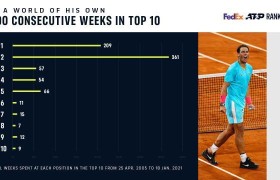体坛周报全媒体特约记者 弈桑 2021年新年伊始,纳达尔便创造了一个新的纪录:他成为史上首位连续位...