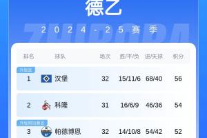 等待了7年!德乙积分榜:汉堡先赛登顶,下轮赢球即可重返德甲!