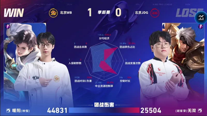 开云体育-中国官网登录入口-WB/JDG第一局数据图:暖阳元坦能抗能打